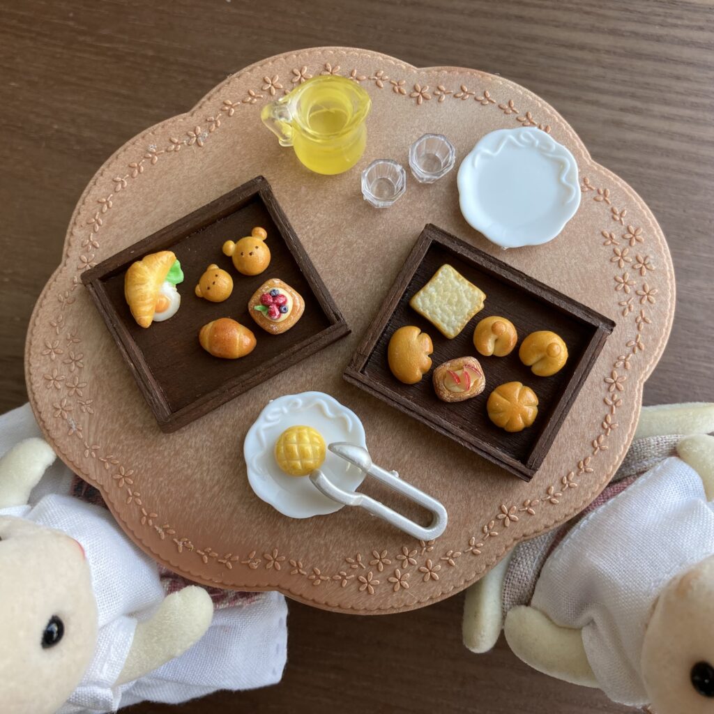「ママ作って!」の一言から、樹脂粘土で小さなパンを作りました。